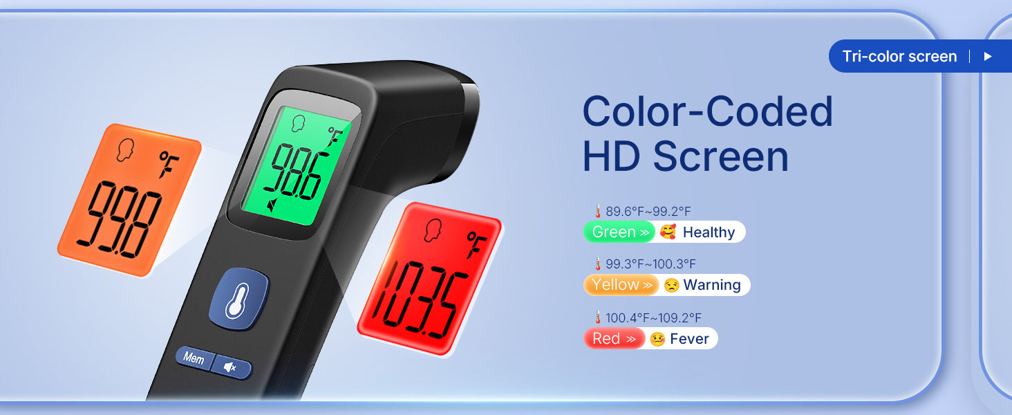 Taking your family’s temperature with Forehead Thermometer is as simple as pointing, and pressing a button. It uses infrared technology and can show readings in Celsius or Fahrenheit.